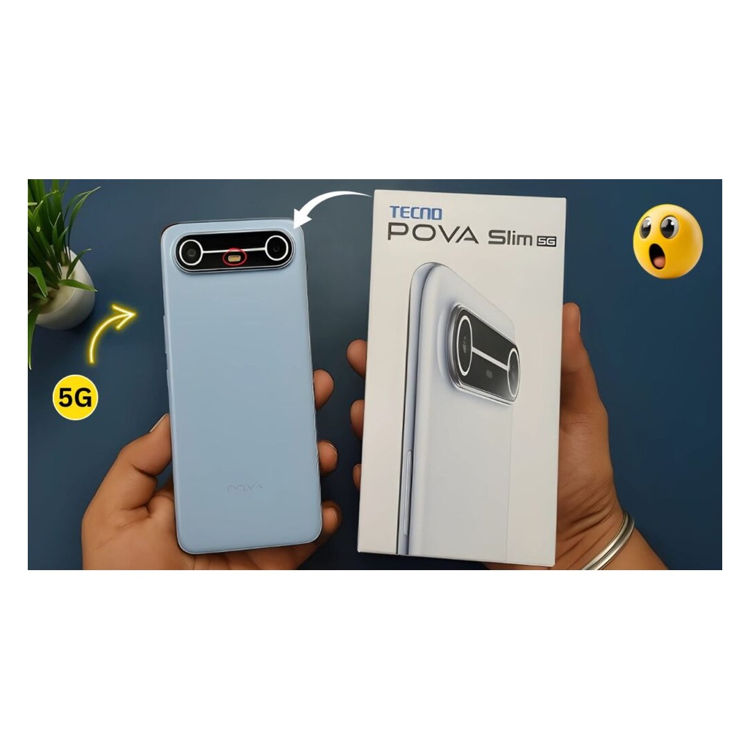 Slim Tecno phone with a large battery and gaming-friendly 5G features. Variant: 8GB/256GB in Blue.